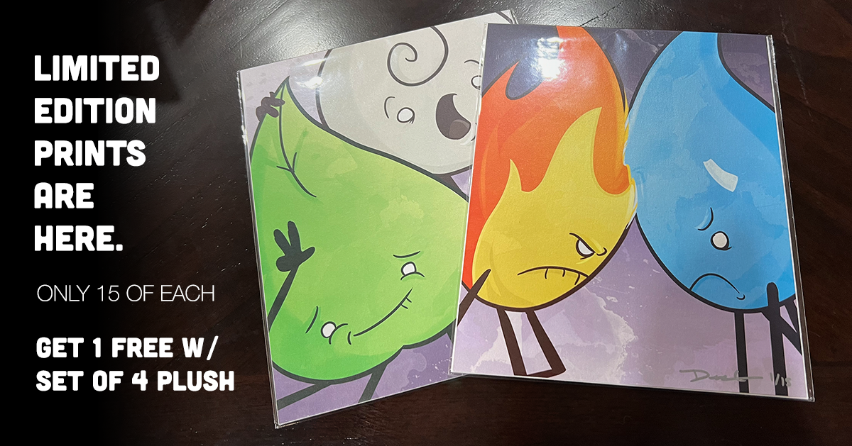 Back in July, we announced that we were going to have a set of limited edition art prints of the Elements available at Denis Caron’s booth at San Diego Comic-Con international. Well, the show is over and we still have a some on hand. Since we know a lot of you weren’t able to make it to the convention, we decided to put them up on our website! You can now get the remaining prints at our store (while supplies last)*, and for a limited time we are going to be offering a couple deals. Each print until October 4th, 2024 will be $7 OFF and if you buy the Set of All Four Plush you can get of them free! If you want everything (the 4 plush, and 2 prints) you can get them for $85 before tax! To make life easier, we’ve included the links to the plush and prints below: